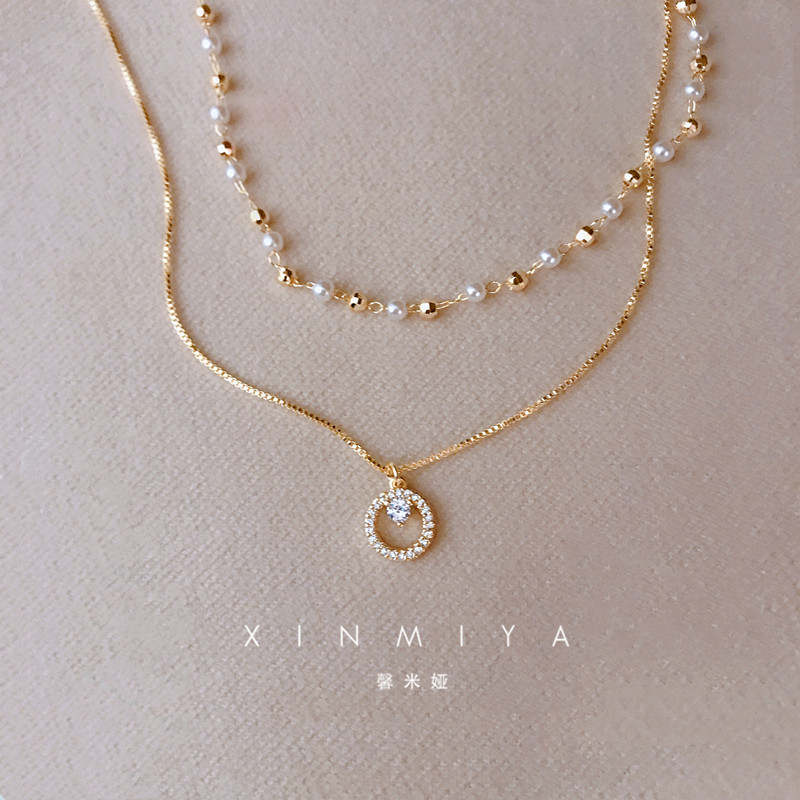 | nameOriginal | Fashionable double layer niche stacked geometric pearl necklace for women |