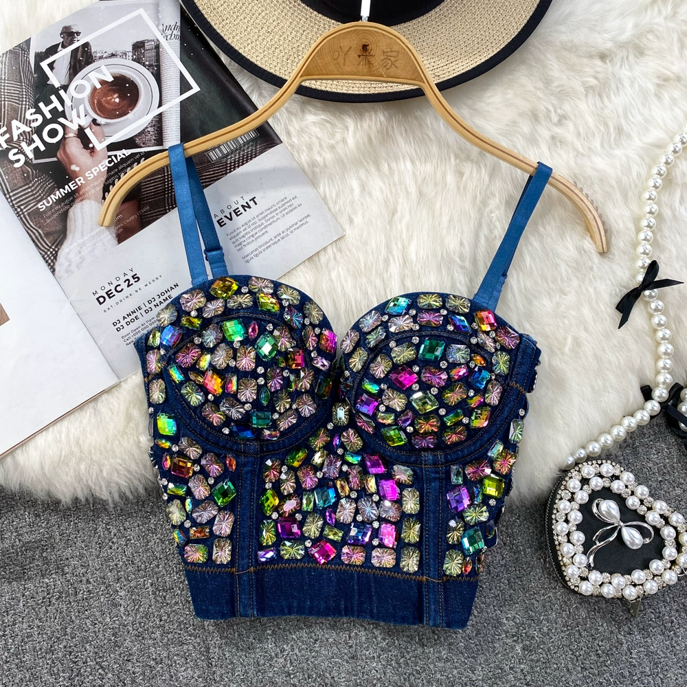 | nameOriginal | Fashionable European and American performance clothing, heavy industry bra, chest-encrusted diamond beading performance clothing, fishbone slim denim camisole |