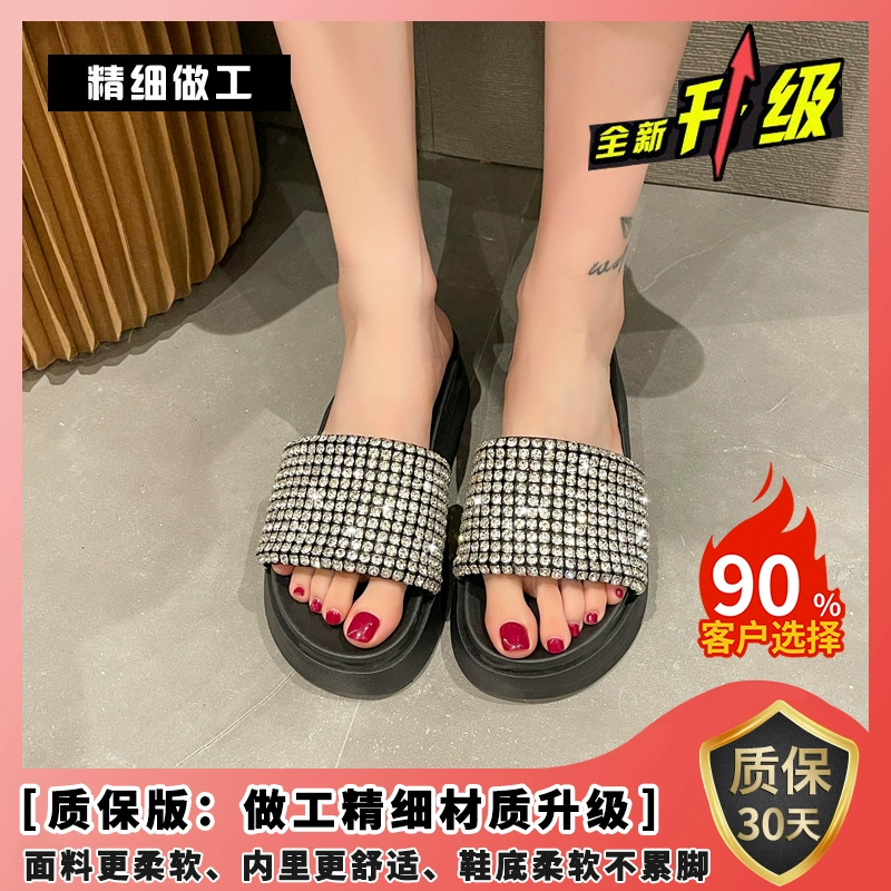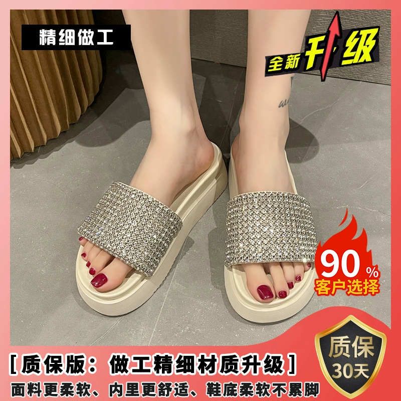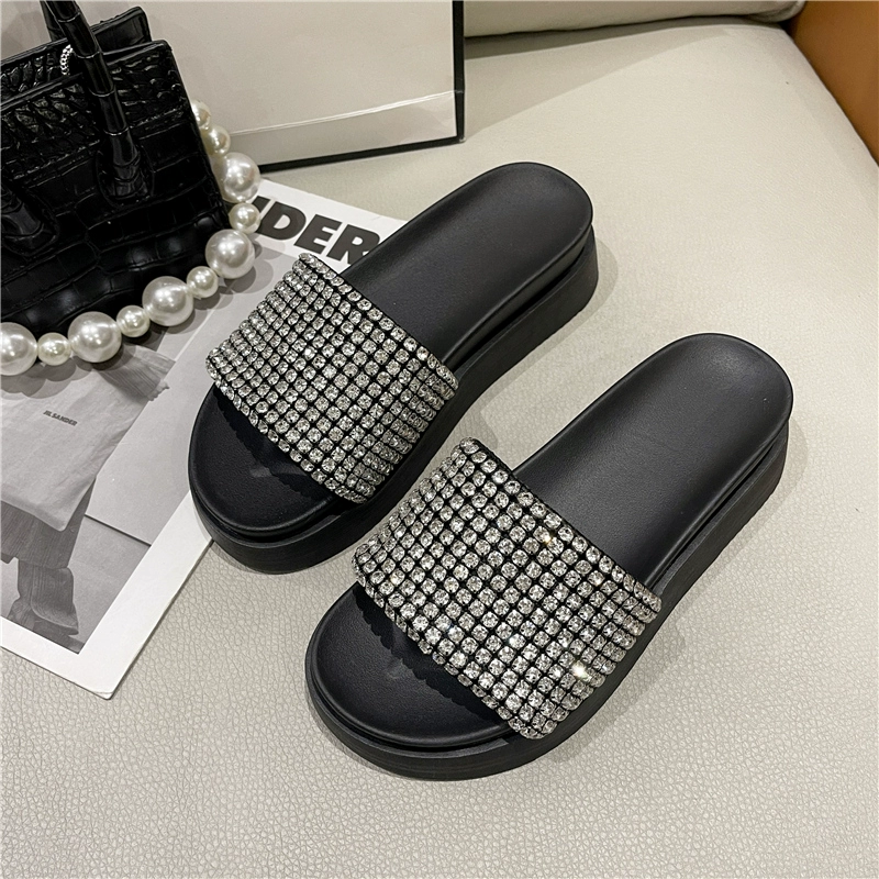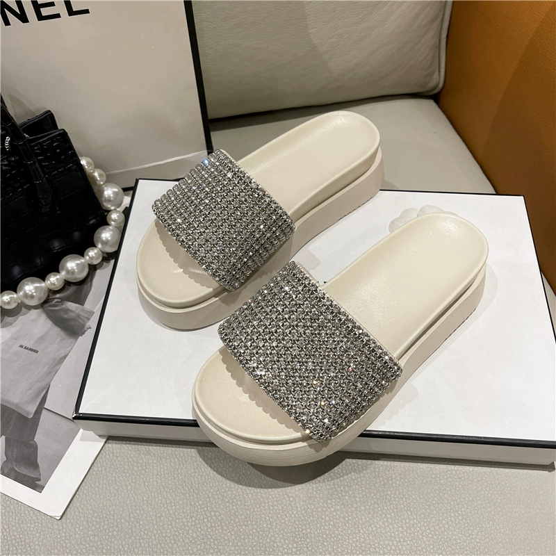Fashionable fairy style thick-soled rhinestone slippers for summer outer wear