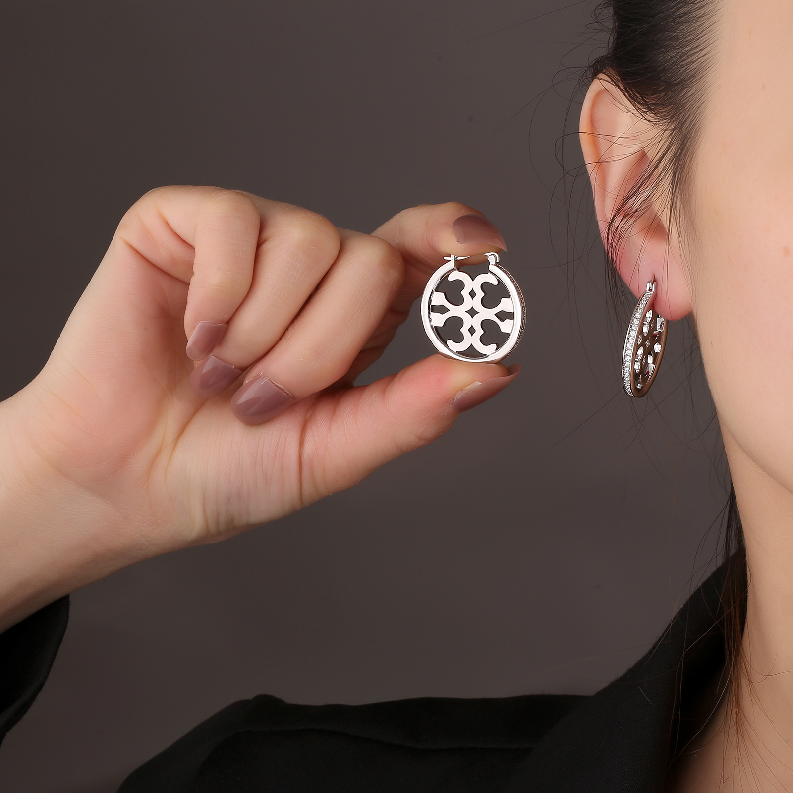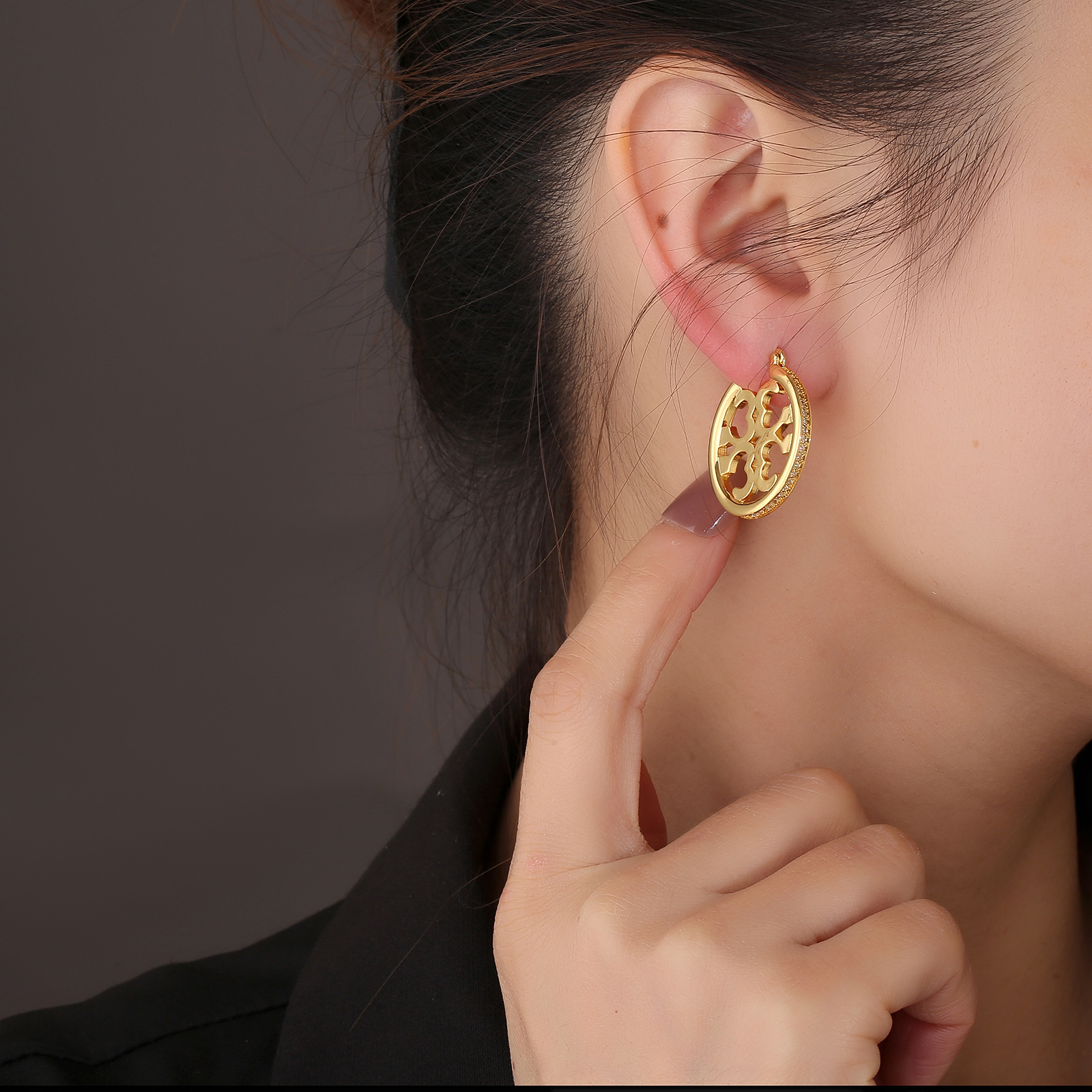 | nameOriginal | Fashionable high-grade earrings big brand quality hollow-out elegant elegant pattern zircon light luxury earrings one-piece delivery |