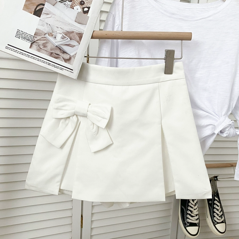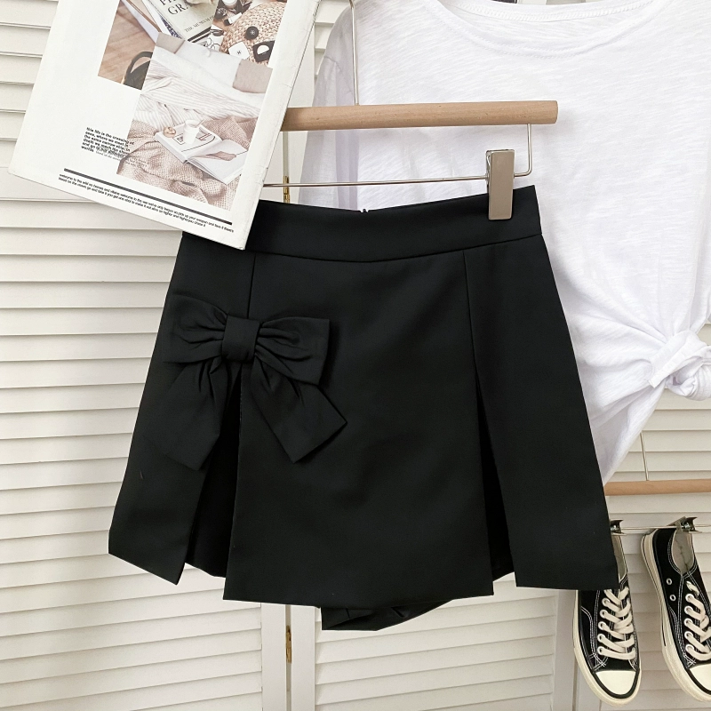 Fashionable high waist split half -body shorts three -dimensional bow knot