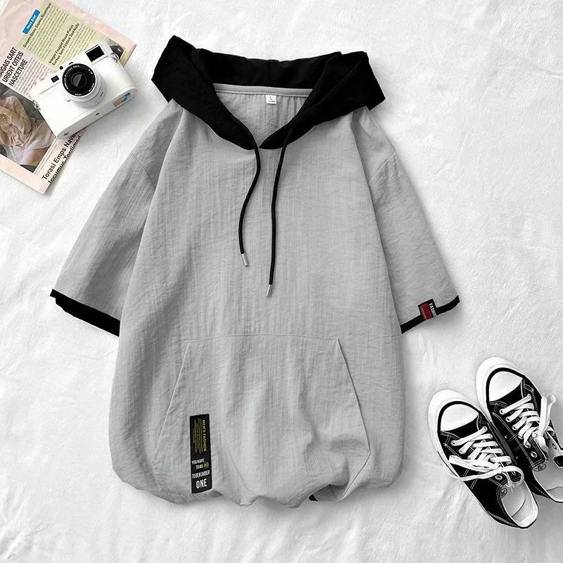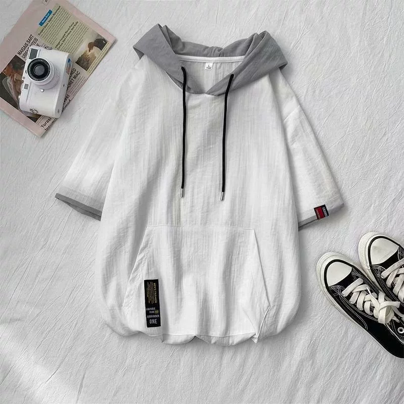 Fashionable hooded sweatshirt simple clean half sleeve linen