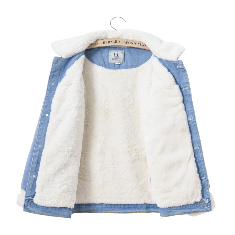 | nameOriginal | Fashionable Korean-style Denim Coat Women's Lamb Fur Winter Imitation Rabbit Fur Casual light blue fleece-lined Thickened Jacket |