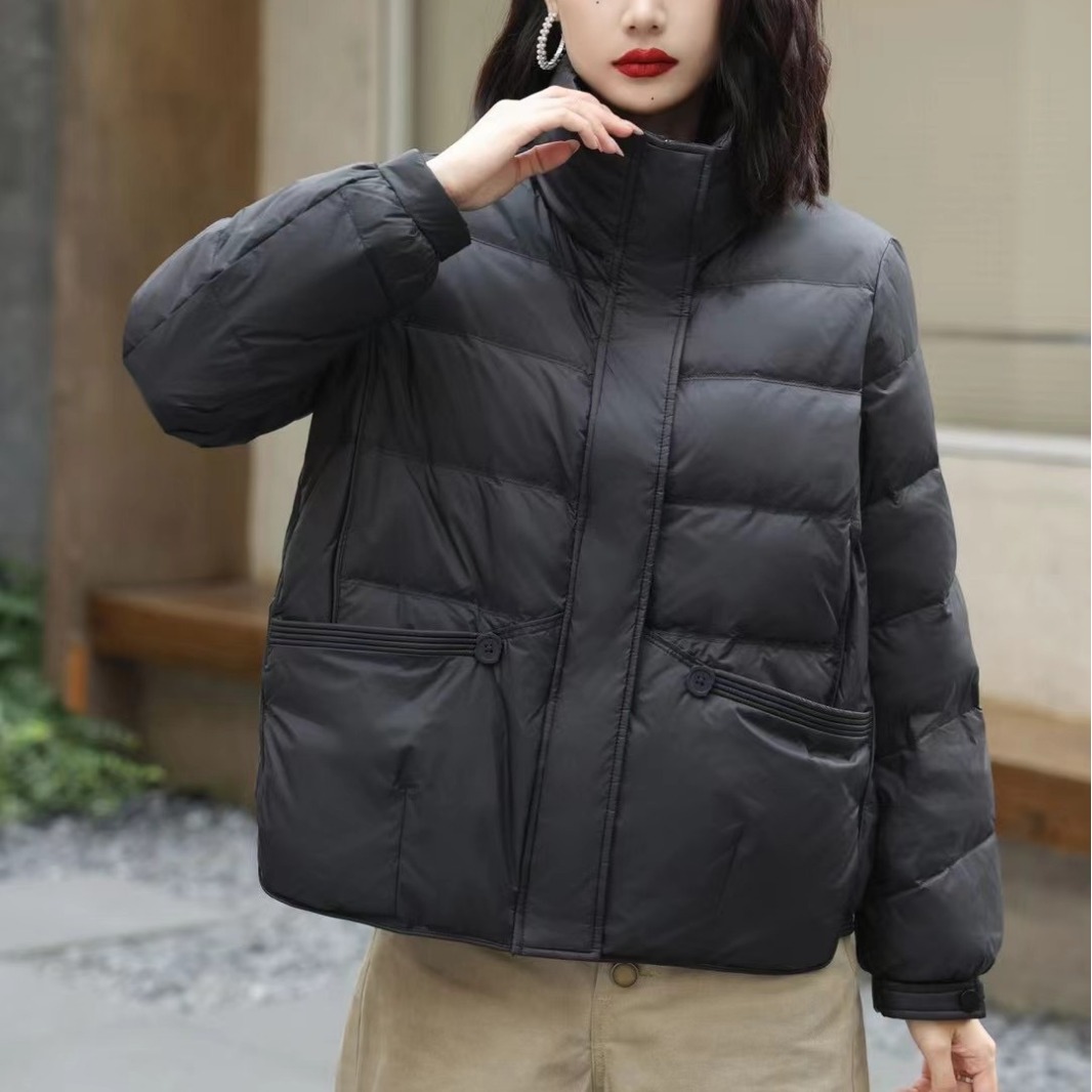 | nameOriginal | Fashionable Korean style large pocket stand collar two-button down jacket women's slimming winter white duck down short loose coat fashion |