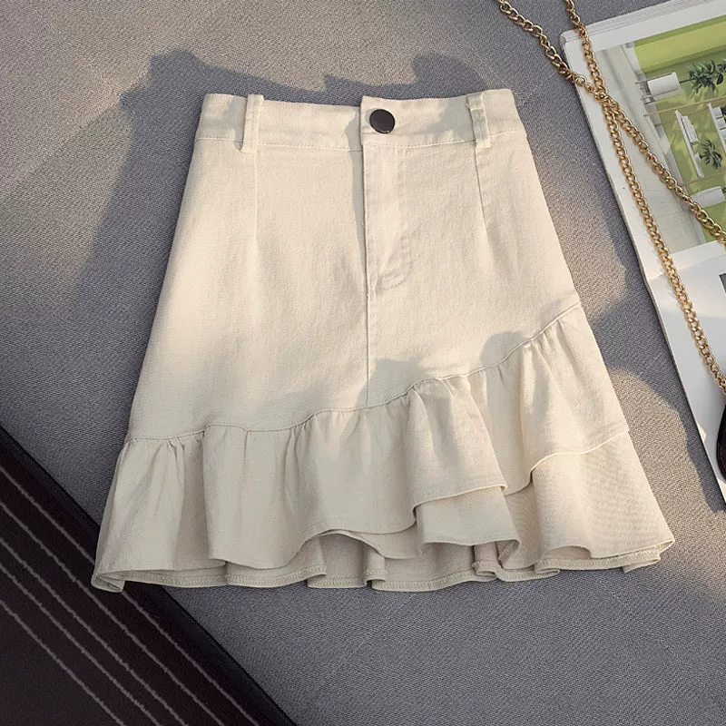 Fashionable Korean style ruffled hip-hugging early spring skirt