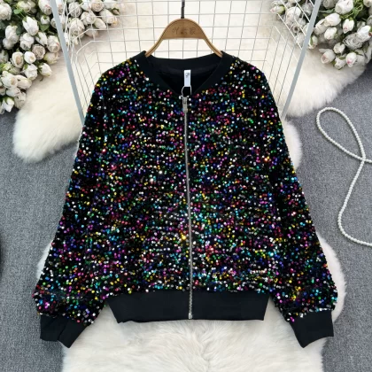| nameOriginal | Fashionable Korean style sparkling casual versatile baseball uniform with sequins |