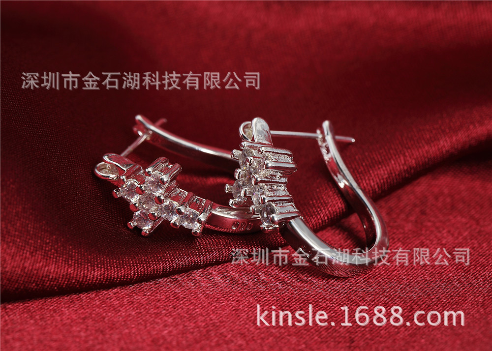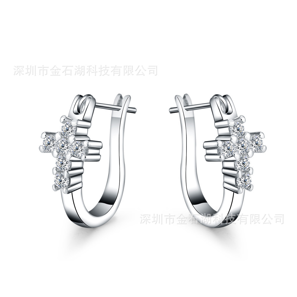 Fashionable Korean-style Women's Zirconium Diamond Cross U-shaped Earrings Exquisite Street Shooting All-match Jewelry ebay New Listing