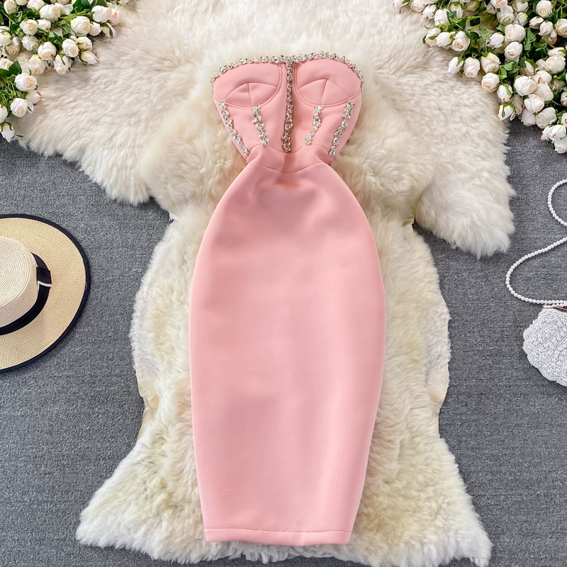 | nameOriginal | Fashionable ladylike hip-hugging dress, high-end light luxury temperament, slimming, backless diamond-encrusted tube top dress for women |