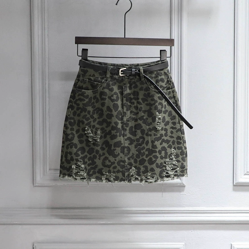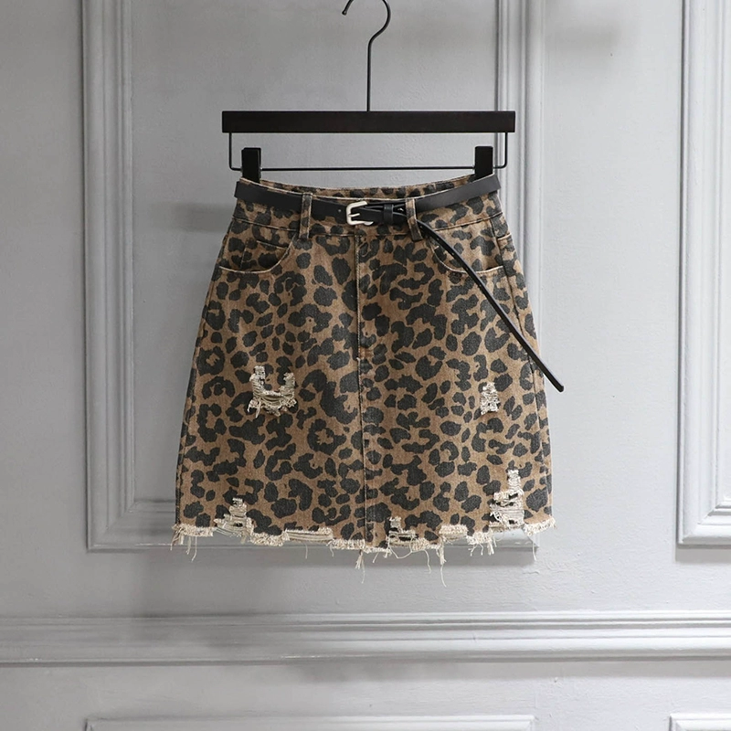 | nameOriginal | Fashionable leopard print summer European style hip-hugging denim skirt |