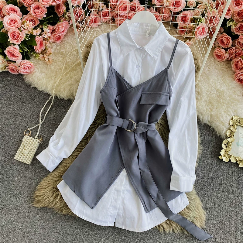 | nameOriginal | Fashionable long-sleeved irregular solid color shirt suspender skirt |