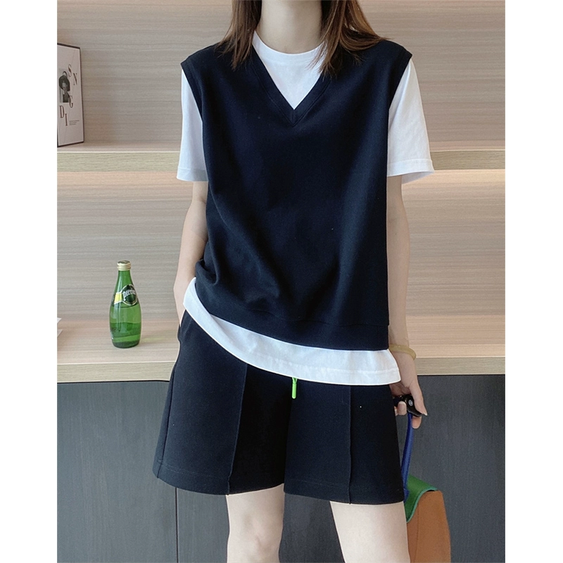 | nameOriginal | Fashionable Loose Fake Two-piece T-Shirt Casual Top Short Sleeve |
