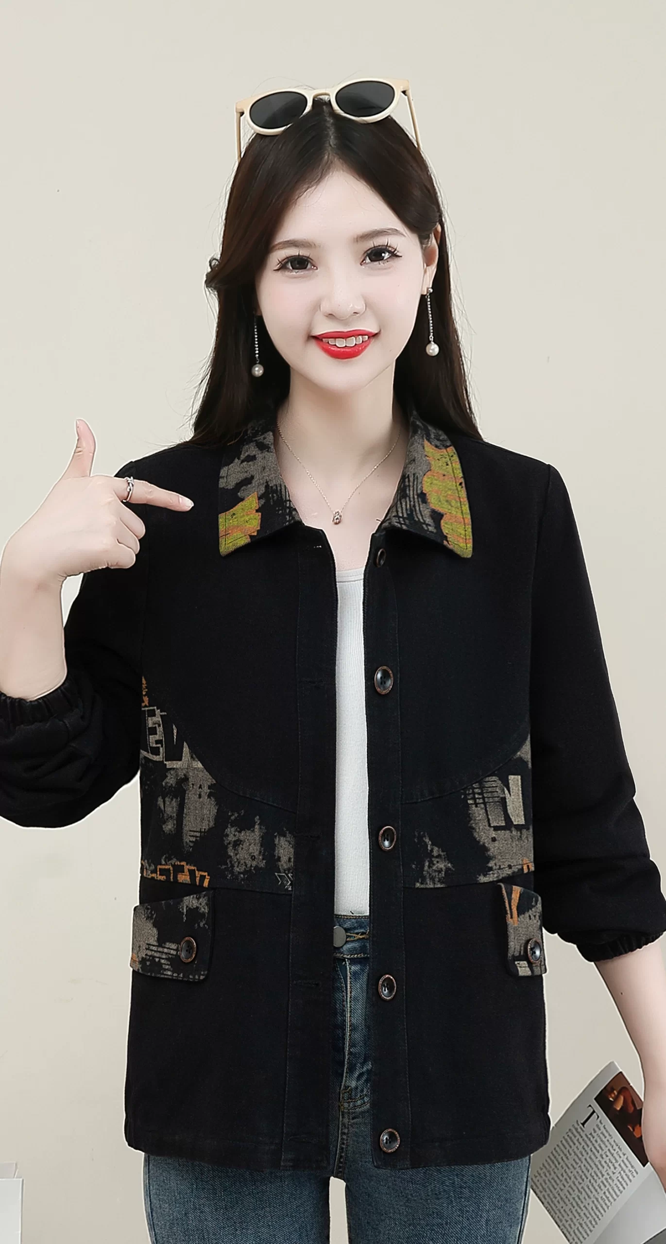 Fashionable middle-aged pocket casual age-reducing denim jacket