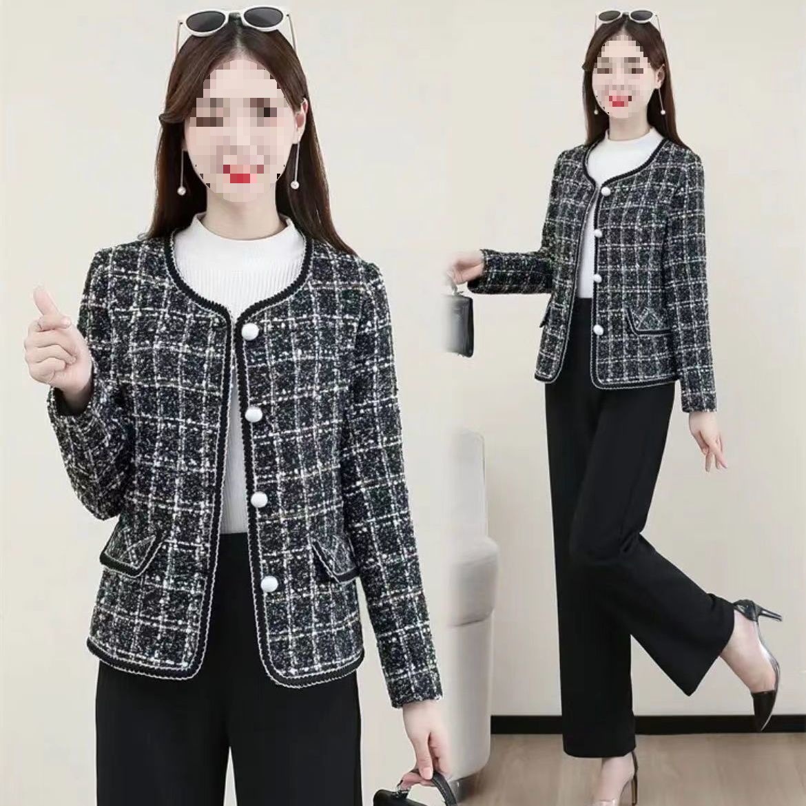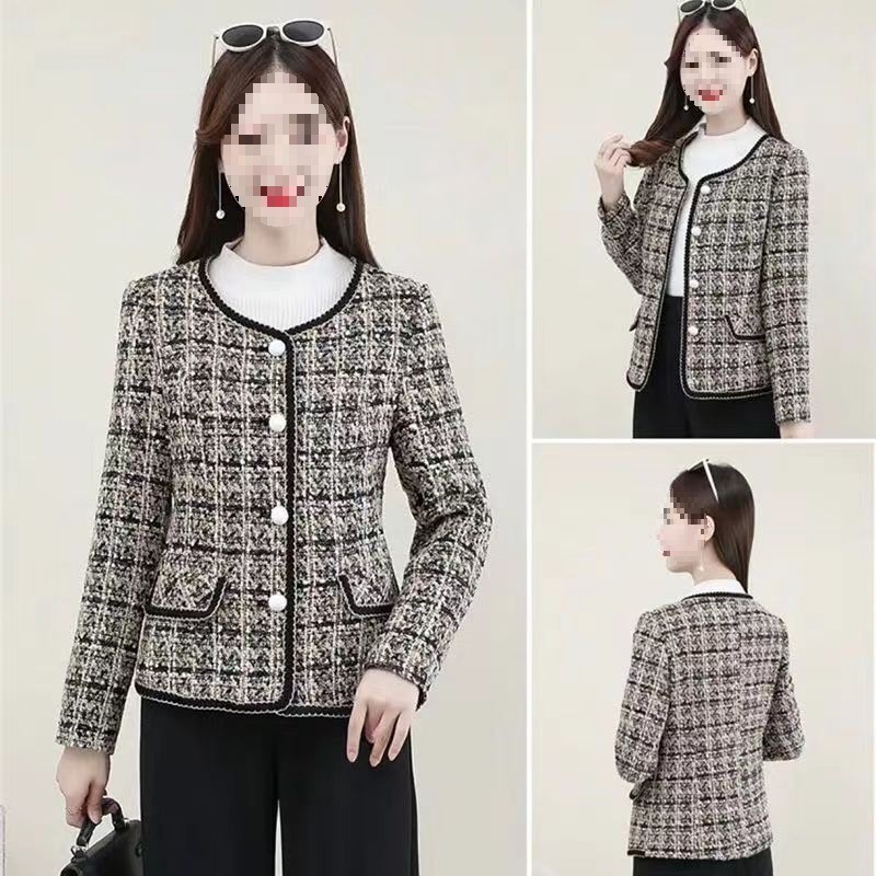 Fashionable Middle-aged Women’s Chanel Style Short Coat 2022 Spring New Houndstooth Mom Crewneck Cardigan Top