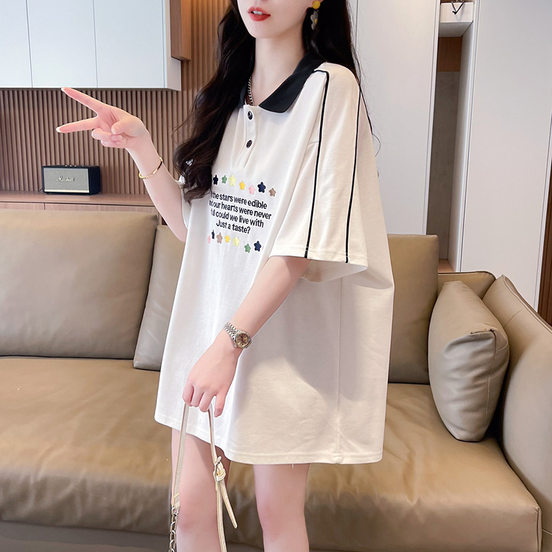 | nameOriginal | Fashionable New 2024 Summer POLO Collar Short-sleeved T-shirt Women's Korean-style Embroidered Top Mid-length plus size Women's Fashion |
