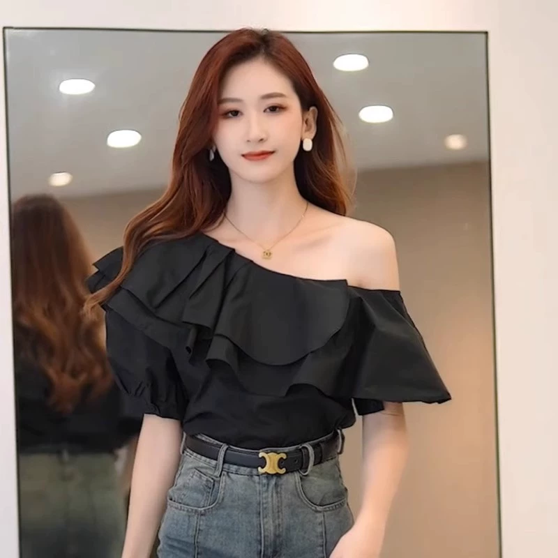 | nameOriginal | Fashionable one-line collar short-sleeved loose top chiffon shirt |