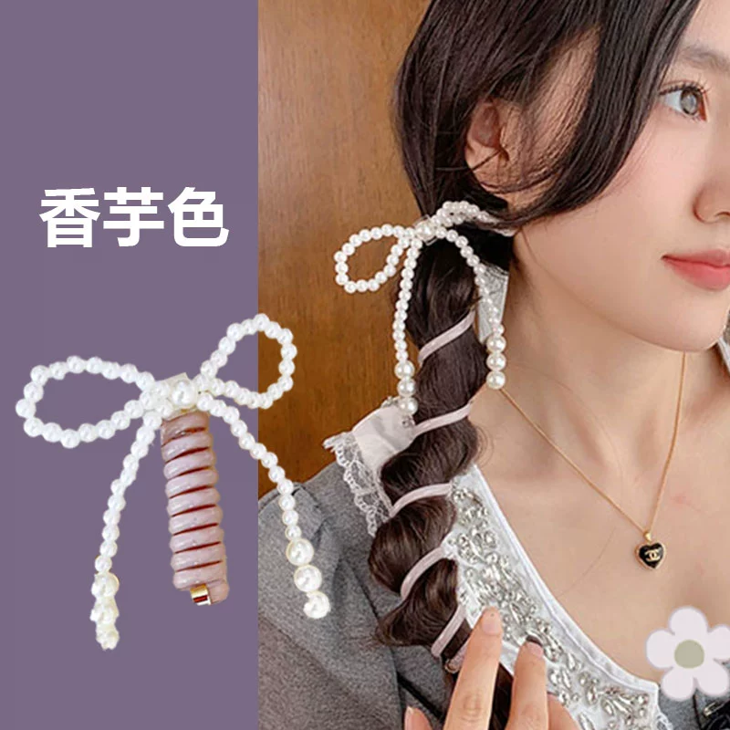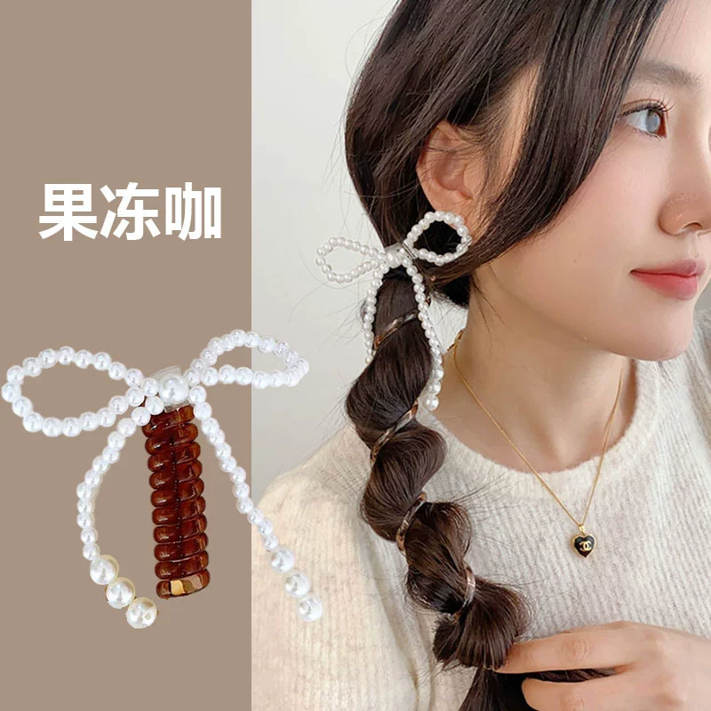 | nameOriginal | Fashionable pearl phone cord bubble braid with ponytail hair rope |