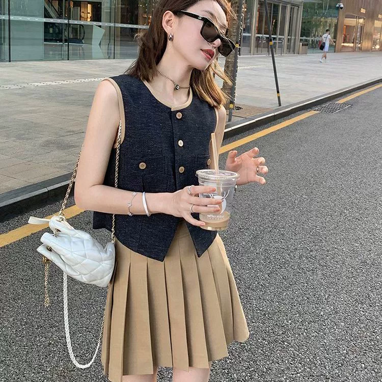 | nameOriginal | Fashionable pleated skirt suit, salt style girl's vest |