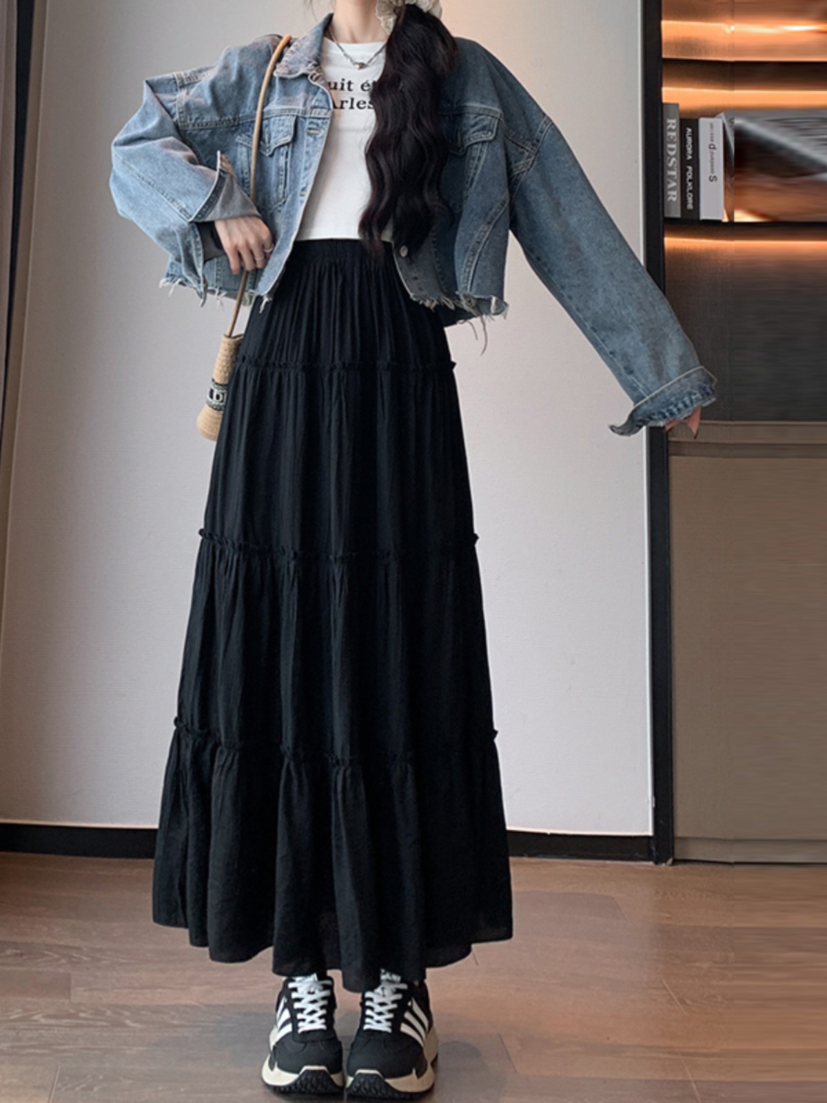 Fashionable plus size fat mm solid color slimming simple A-line skirt