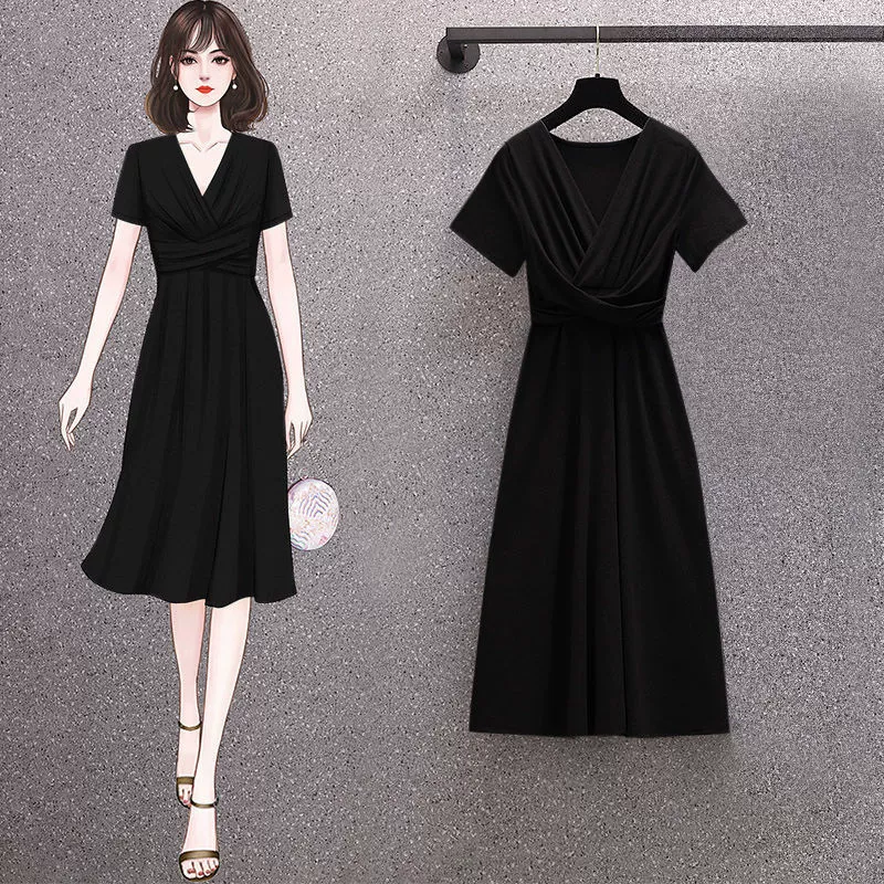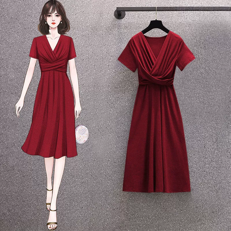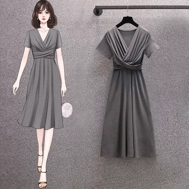| nameOriginal | Fashionable plus size women's pleated solid color simple dress |