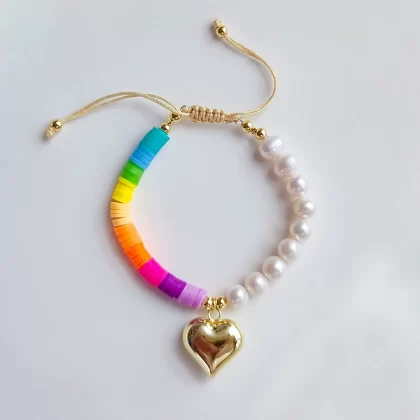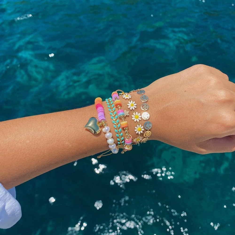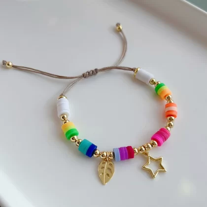 Fashionable polymer clay multi-layered small bracelets with beads for women