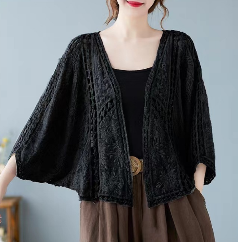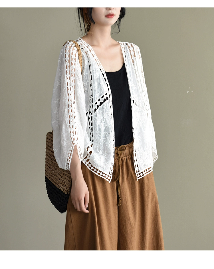 Fashion retro hollow hook hook all cotton cloak small cardigan