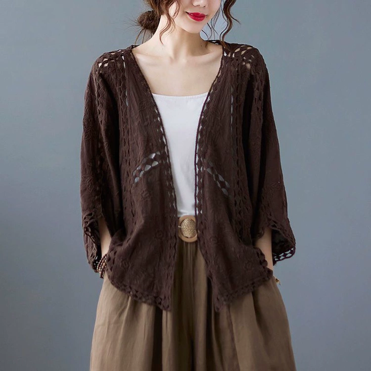 Fashionable retro hollow hook pattern cotton cape cardigan