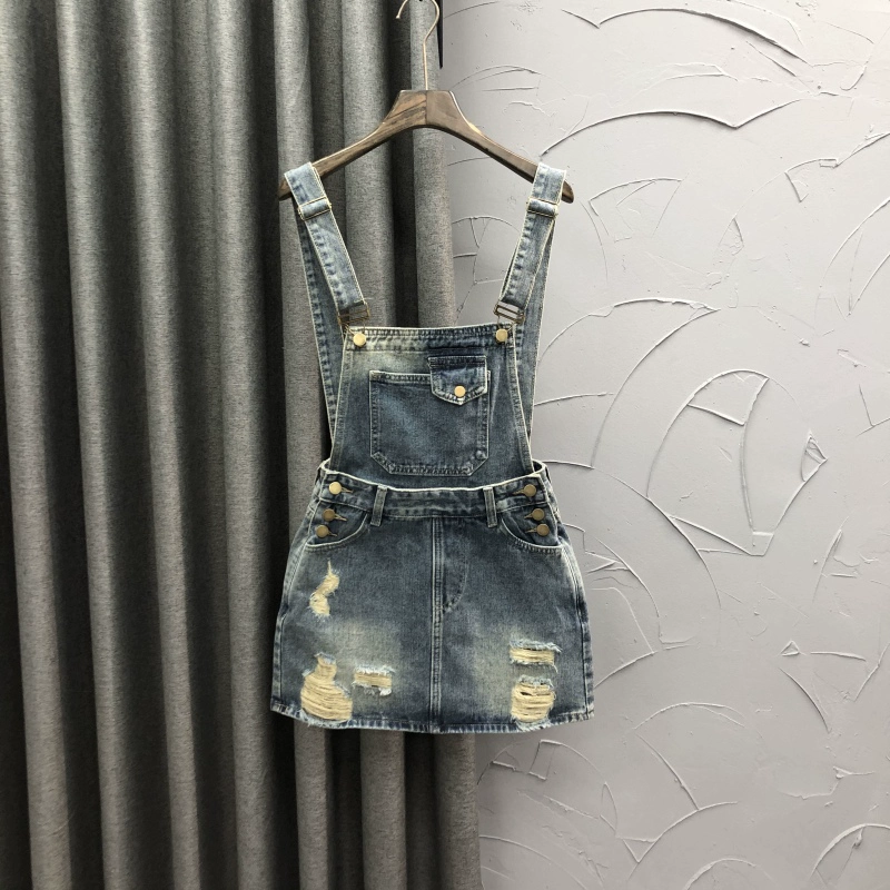 | nameOriginal | Fashionable ripped and stylish half-length denim suspender skirt for age reduction |