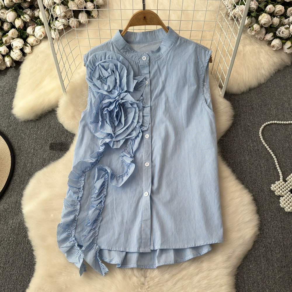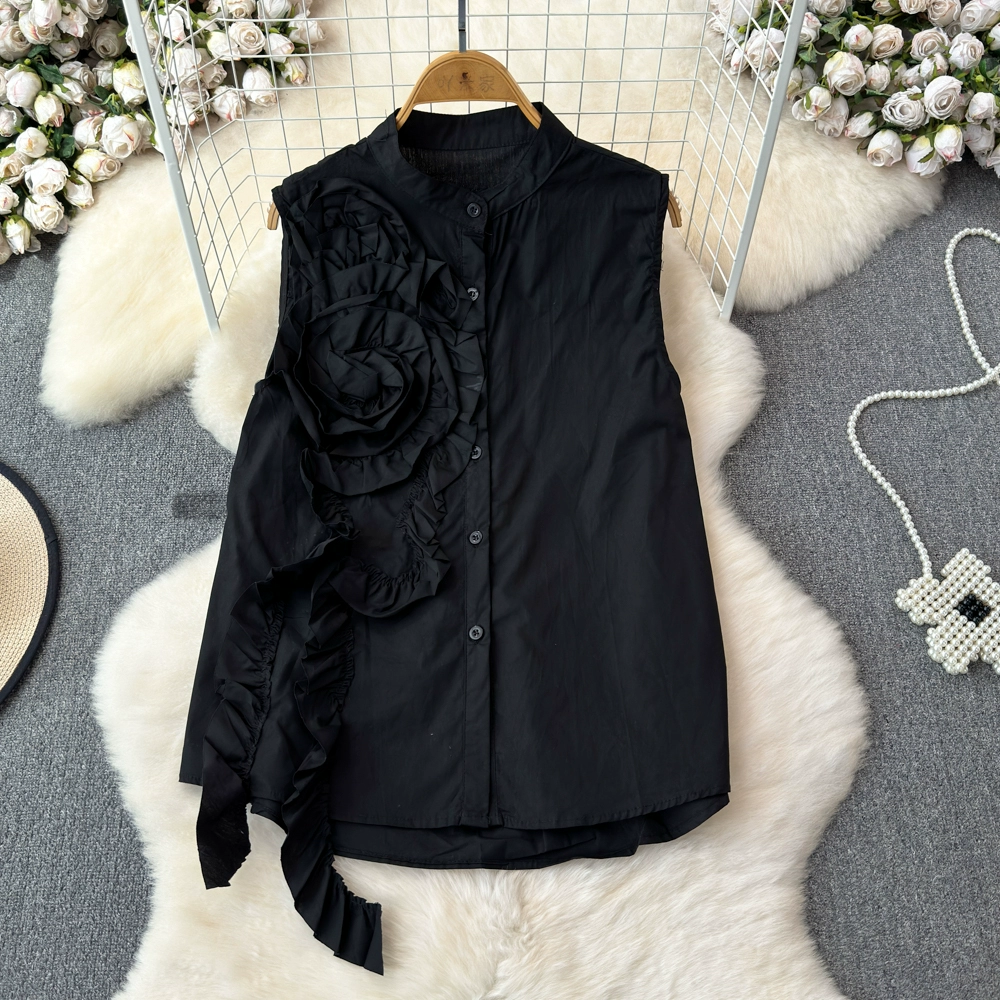 | nameOriginal | Fashionable ruffled three-dimensional large potted flower irregular splicing sleeveless shirt with high-end design and versatile slimming shirt |