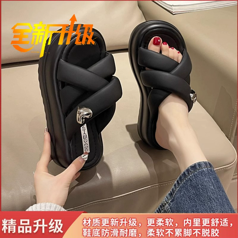 | nameOriginal | Fashionable sandals 2024 spring and summer new style Internet celebrity bread cross slippers platform thick-soled beach shoes sandals for women |
