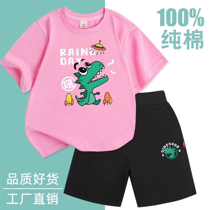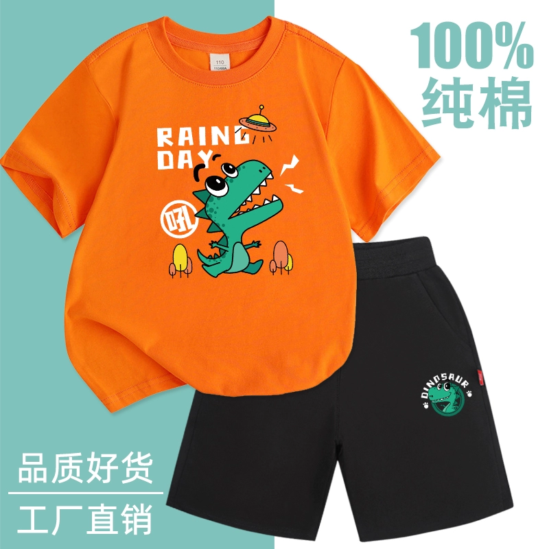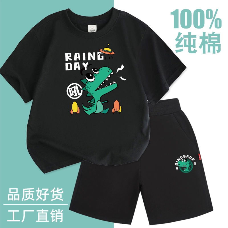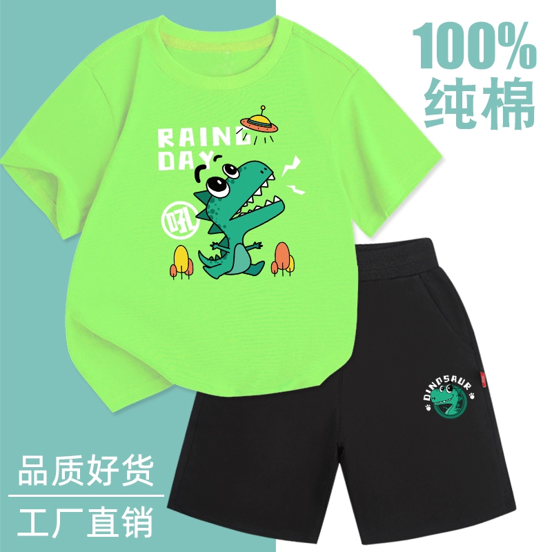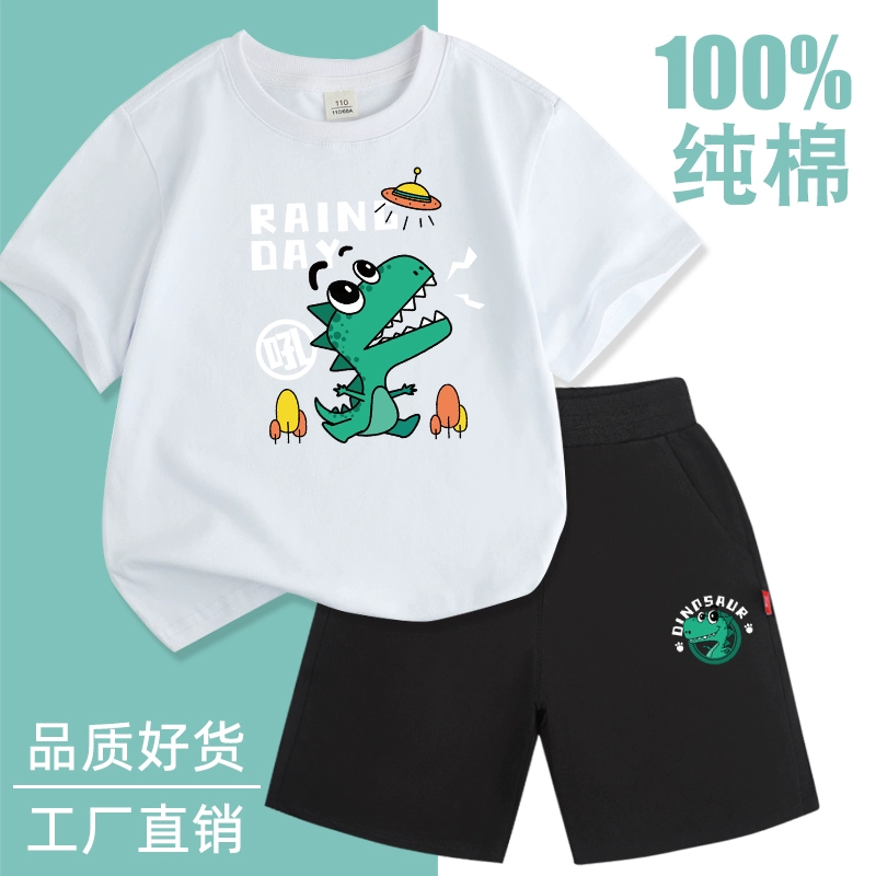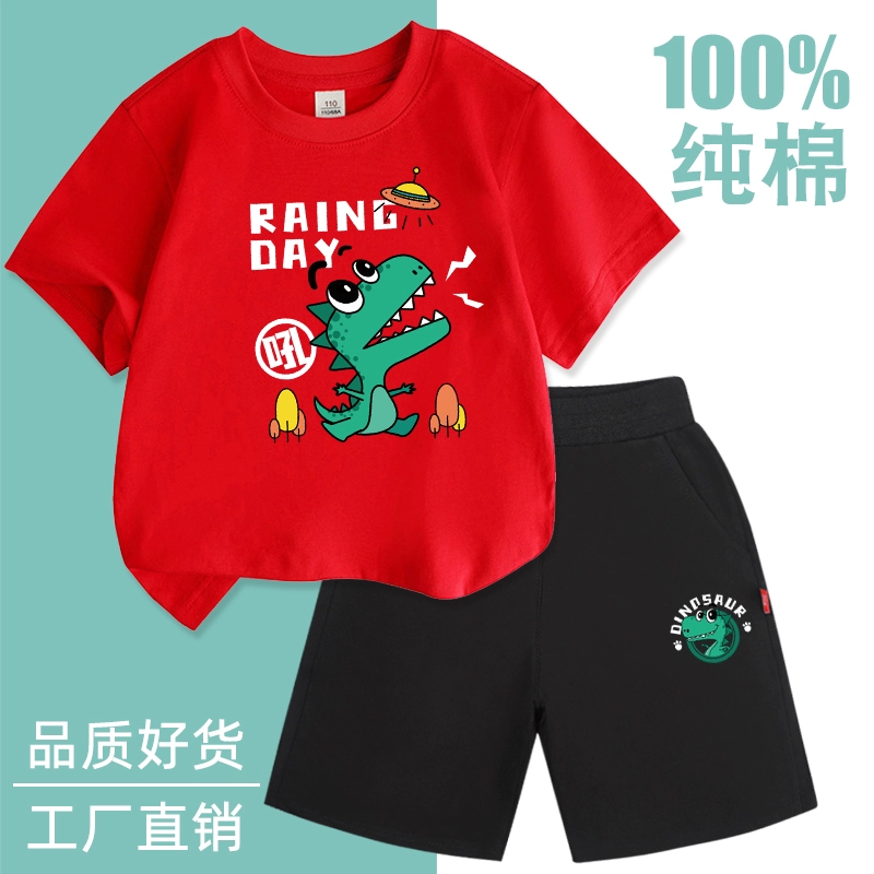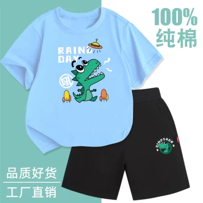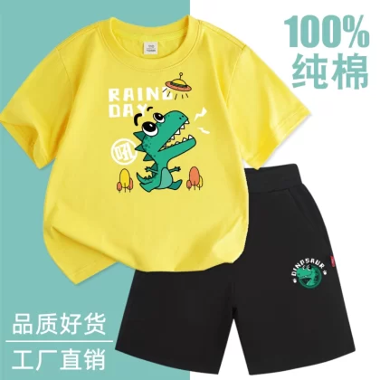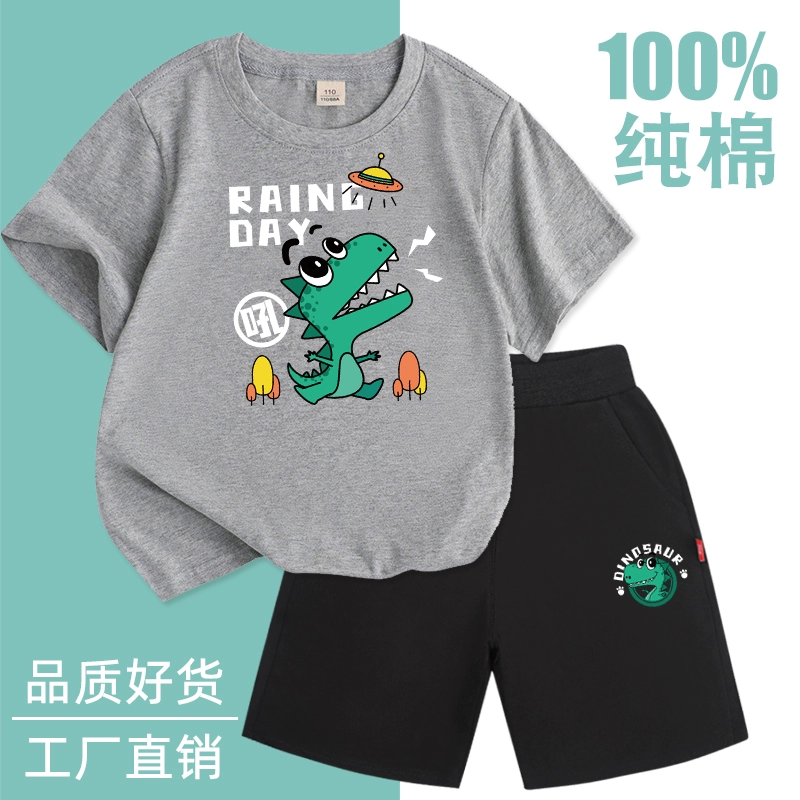 Fashionable short-sleeved cotton two-piece thin summer suit for boys