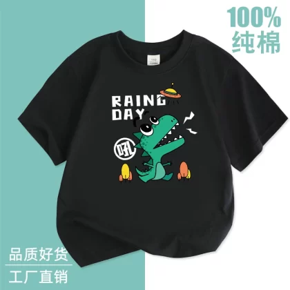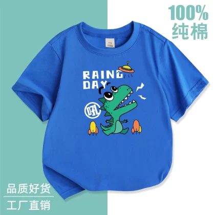 Western -style short -sleeved cotton two -piece slope thin boy summer dress
