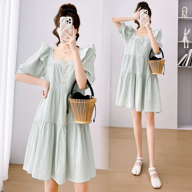 | nameOriginal | Fashionable short-sleeved square neck, fresh and age-reducing maternity wear |