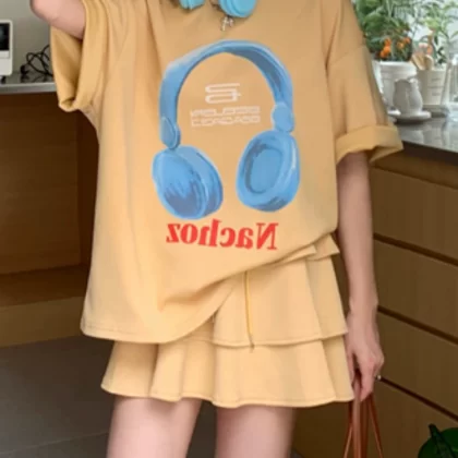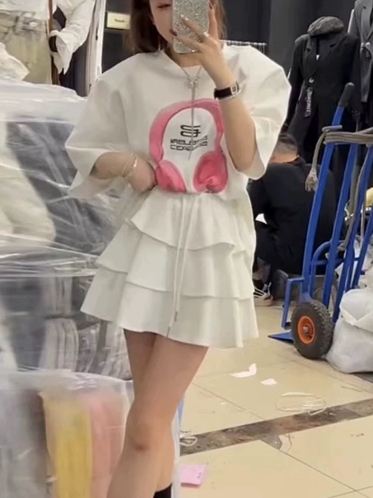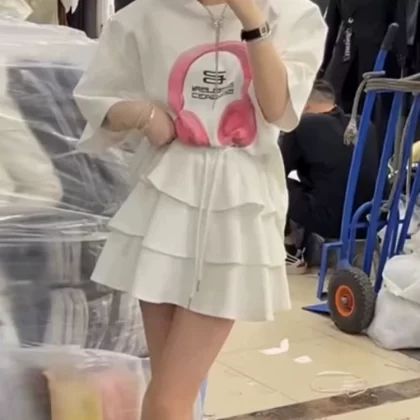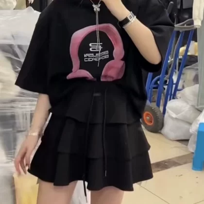 | nameOriginal | Fashionable short-sleeved T-shirt high-waist ruffle suit skirt |