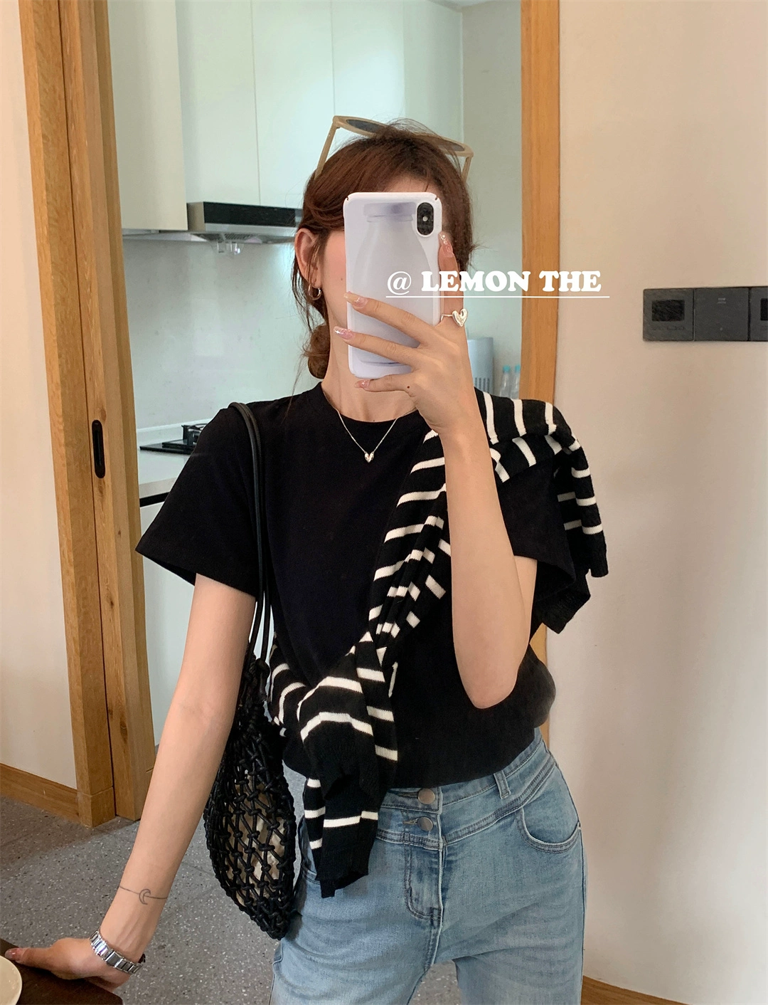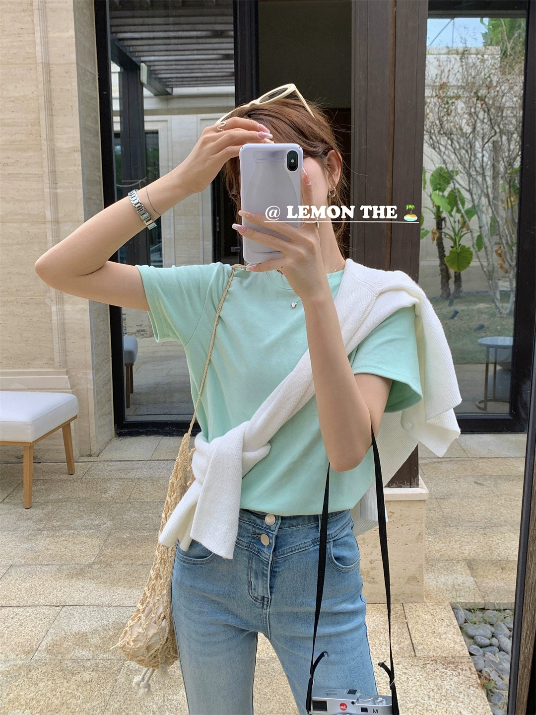| nameOriginal | Fashionable shoulder spring and summer tops round neck short sleeve T-shirt |