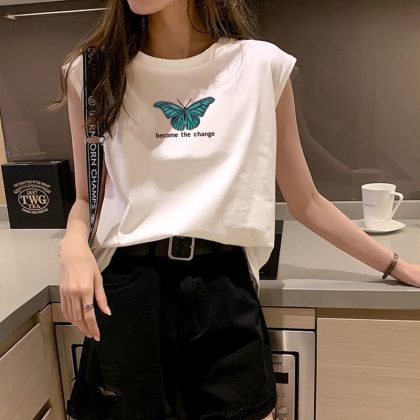 | nameOriginal | Fashionable Sleeveless T-Shirt Vest Women's Clothing Summer Outer Wear Fashionable White Loose Student Inner Wear Sports Top Fashionable Instagram |