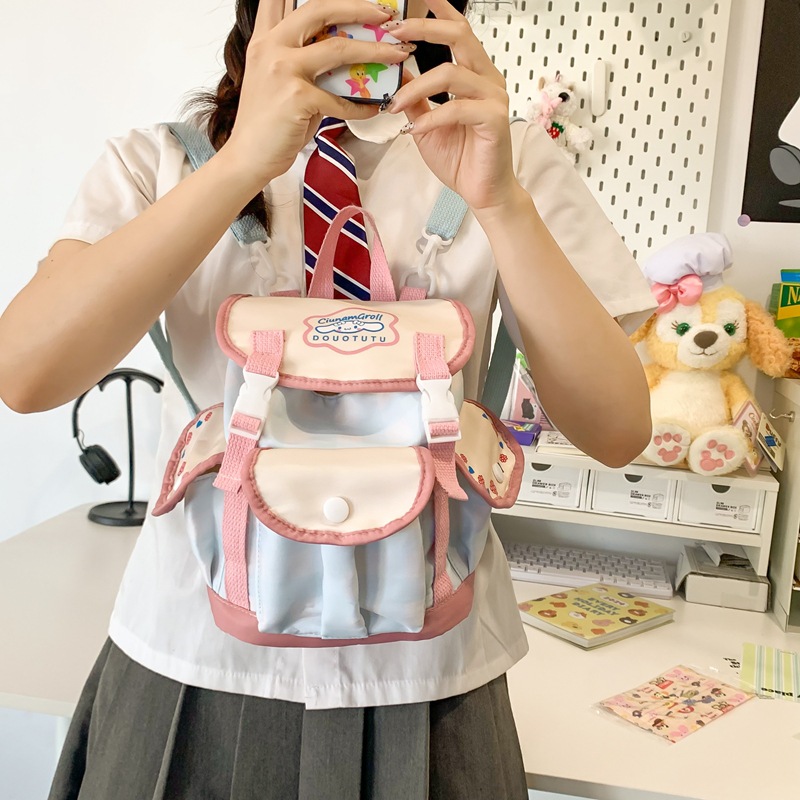 Fashionable Small Fresh Color Contrast Backpack Women's New Casual Shopping Small Backpack Outdoor Travel Multifunctional Crossbody Bag