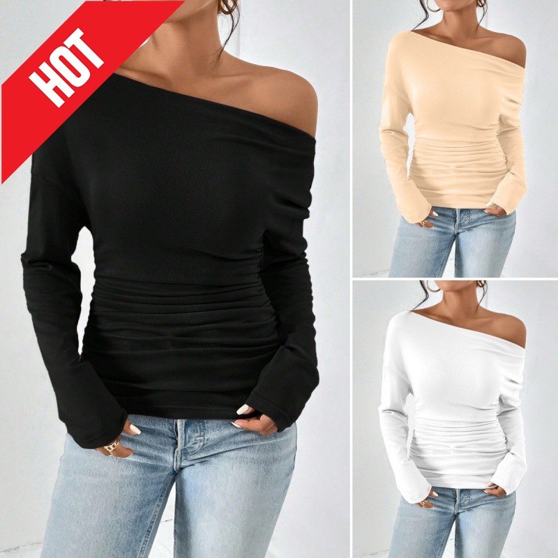 | nameOriginal | Fashionable small shirt for women 2024 spring new cross-border foreign trade European and American Amazon long sleeve waist slimming off-shoulder top |