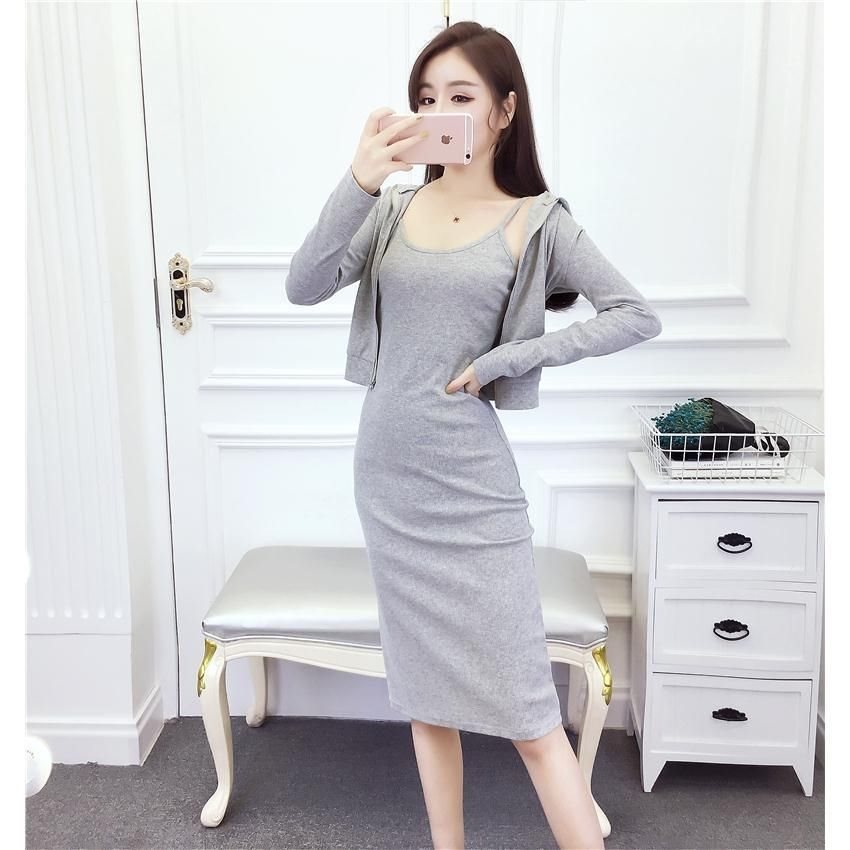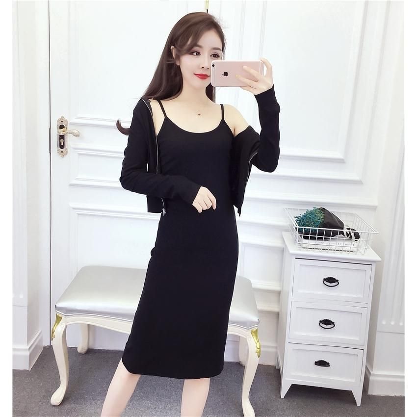 | nameOriginal | Fashionable suit Spring Korean Style Base Slim Fit Bag Hip Sling dress Zipper Long Sleeve Cardigan Jacket Two-Piece Set |