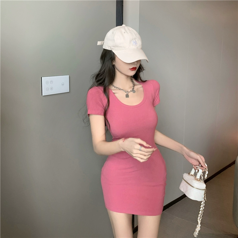 | nameOriginal | Fashionable temperament black short-sleeved dress for women summer new Korean style slimming sexy hot girl hip skirt |