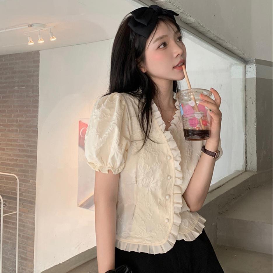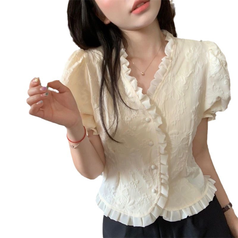 | nameOriginal | Fashionable V-neck Puff Sleeve Shirt Women's Summer Design Niche French Style Chic Tight Short Sweet Top |