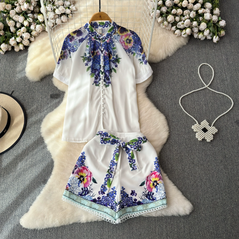 | nameOriginal | Fashionable women's suit, light and mature temperament, positioning printed shirt, versatile high-waisted slimming wide-leg pants and shorts two-piece set |