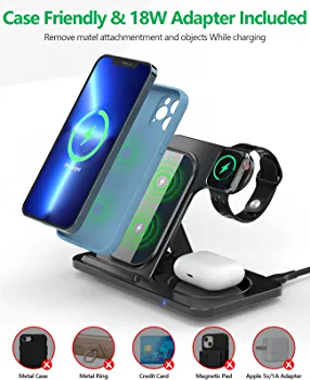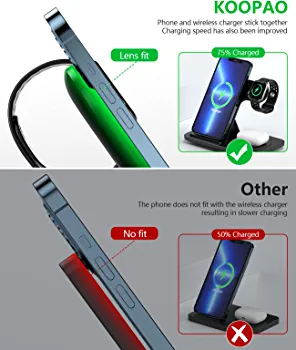 This wireless charging stand is compatible with most Qi-enabled phones, but please ensure your device supports wireless charging before purchasing. To ensure fast charging, use the 18W QC 3.0 adapter, and avoid using a thick protective case or other attachments while charging your devices.