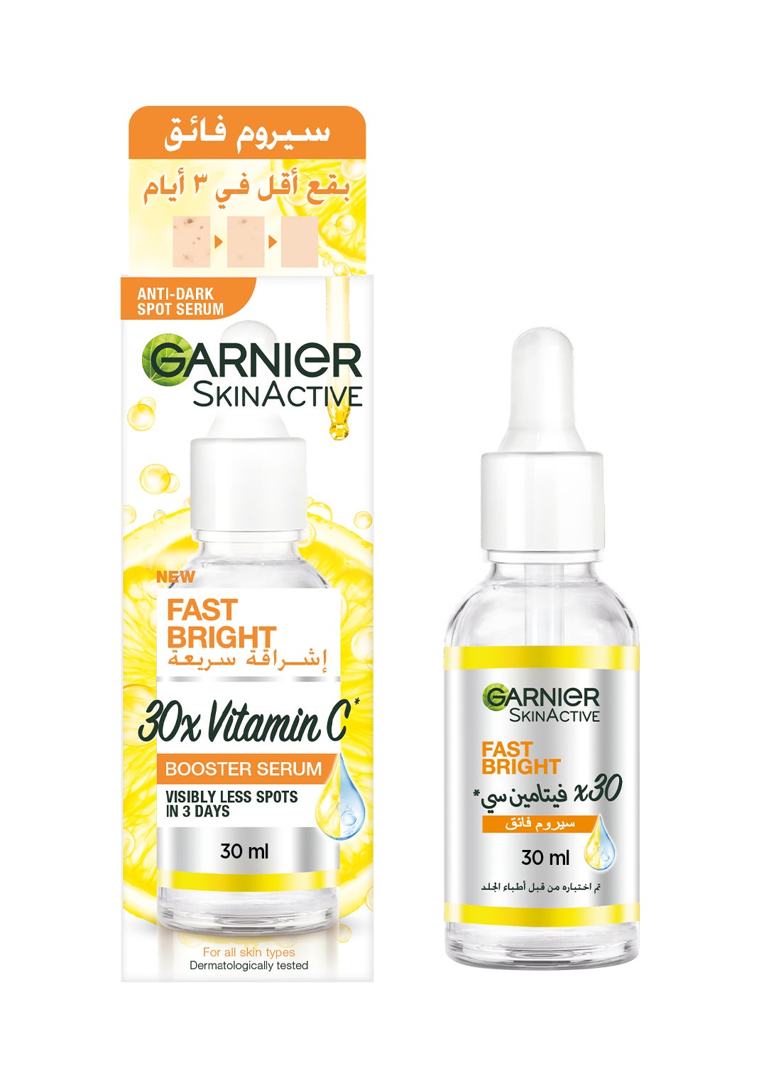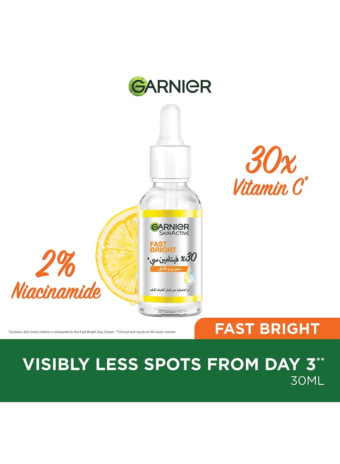 Introducing SkinActive Fast Bright 30x Vitamin C & Niacinamide Anti Dark Spot Serum 30ml, the ultimate solution for achieving a brighter, more even complexion. This powerful serum is formulated with 30x Vitamin C and Niacinamide, two potent ingredients that work together to effectively reduce the appearance of dark spots, hyperpigmentation, and uneven skin tone.
