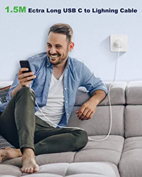 This phone fast charger with 20W Power Delivery is three times faster than the original 5W charger and can charge your Phone 13 up to 60% in just 30 minutes, saving you more than an hour. The smart charging function ensures that your device avoids over-voltage, over-current, over-heating, and other problems and stops charging when the battery is fully charged. The cable is durable and has undergone over 25000 bending tests, making it long-lasting for users.