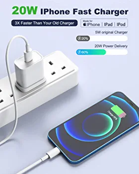 This phone fast charger with 20W Power Delivery is three times faster than the original 5W charger and can charge your Phone 13 up to 60% in just 30 minutes, saving you more than an hour. The smart charging function ensures that your device avoids over-voltage, over-current, over-heating, and other problems and stops charging when the battery is fully charged. The cable is durable and has undergone over 25000 bending tests, making it long-lasting for users.