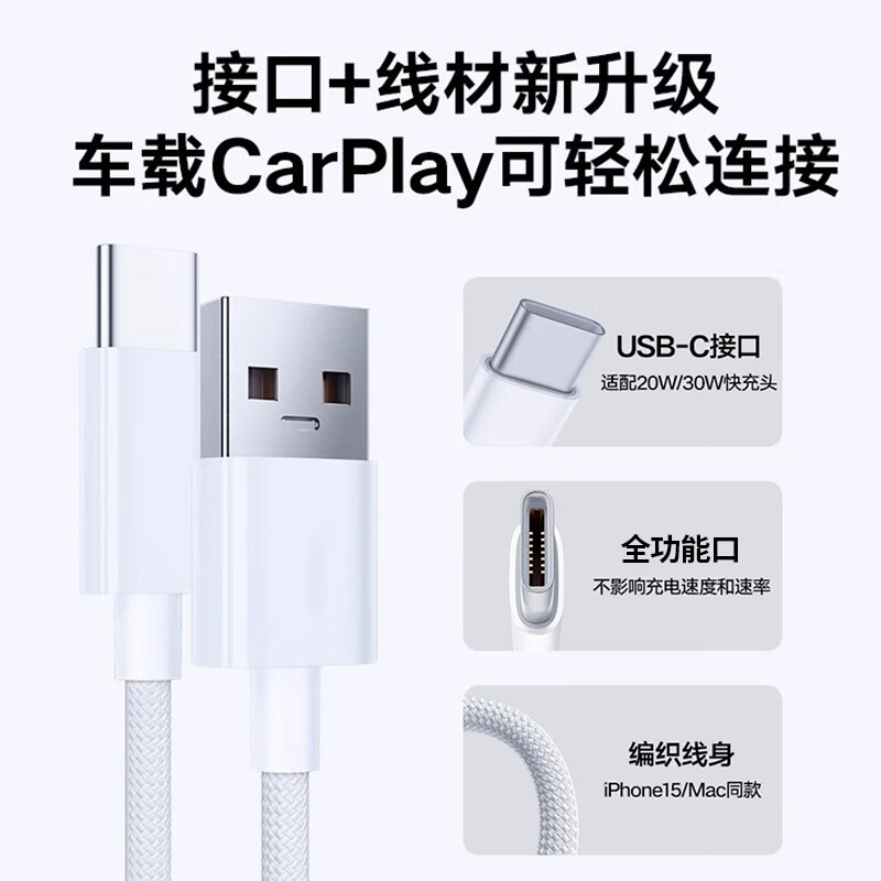 Fast charging data cable for Apple 15 mobile phone iphone15pro car charging woven carpaly special cable