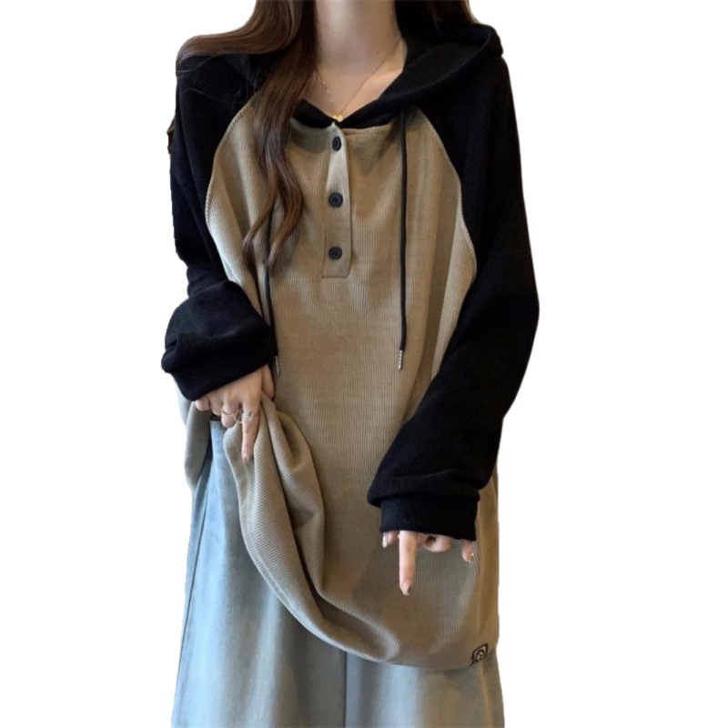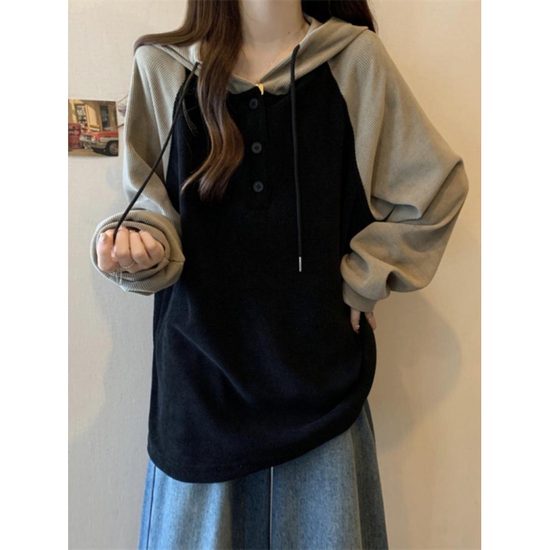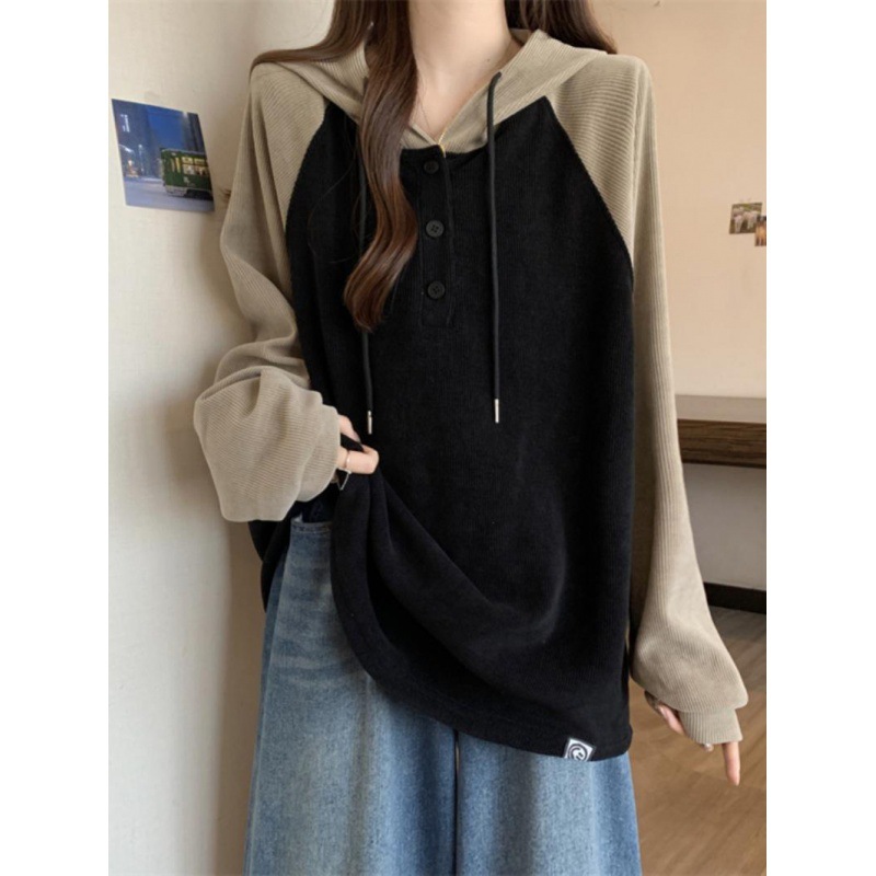 Fat 300 Jin American Raglan Sleeve Hooded Women’s Spring New Base Shirt Slim Loose Lazy Style Top
