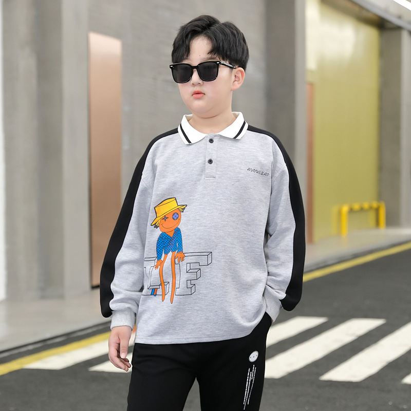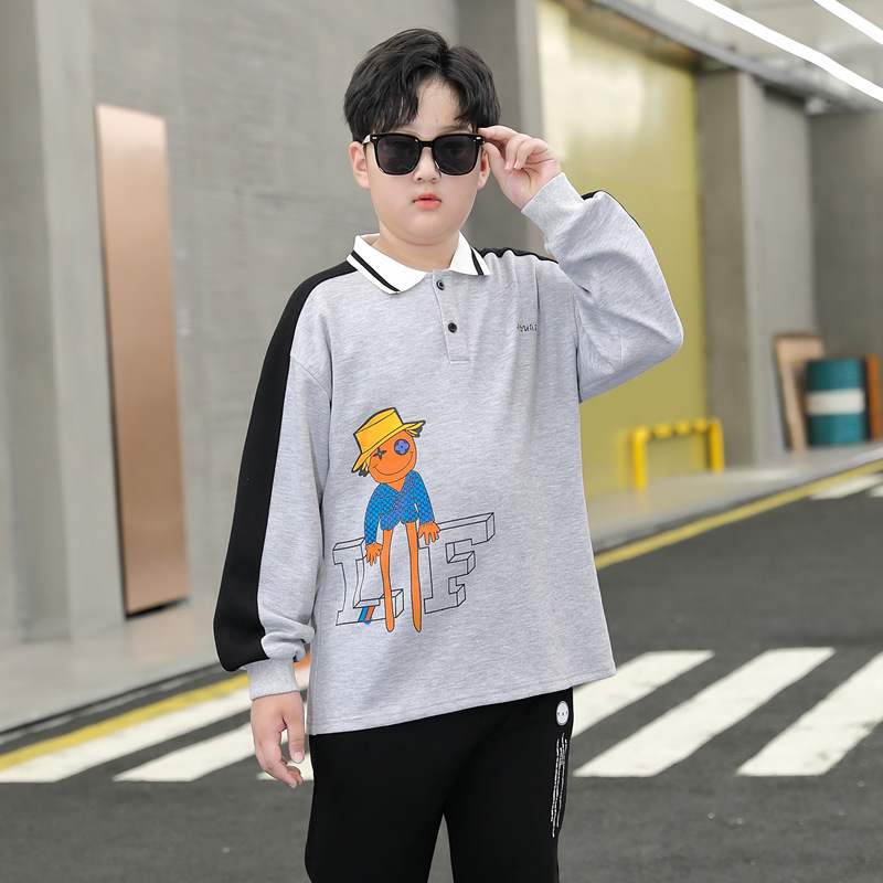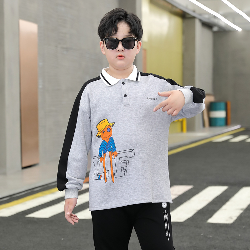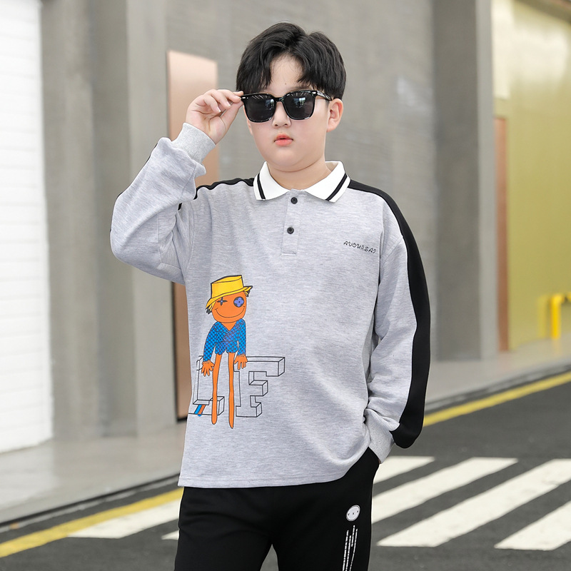 | nameOriginal | Fat children's clothing plus fat plus size Spring and Autumn long sleeve T-shirt for boys and older children's T-shirt Polo Shirt Flip collar tide |
