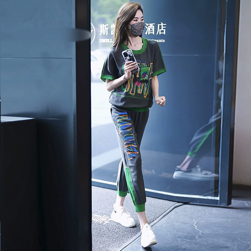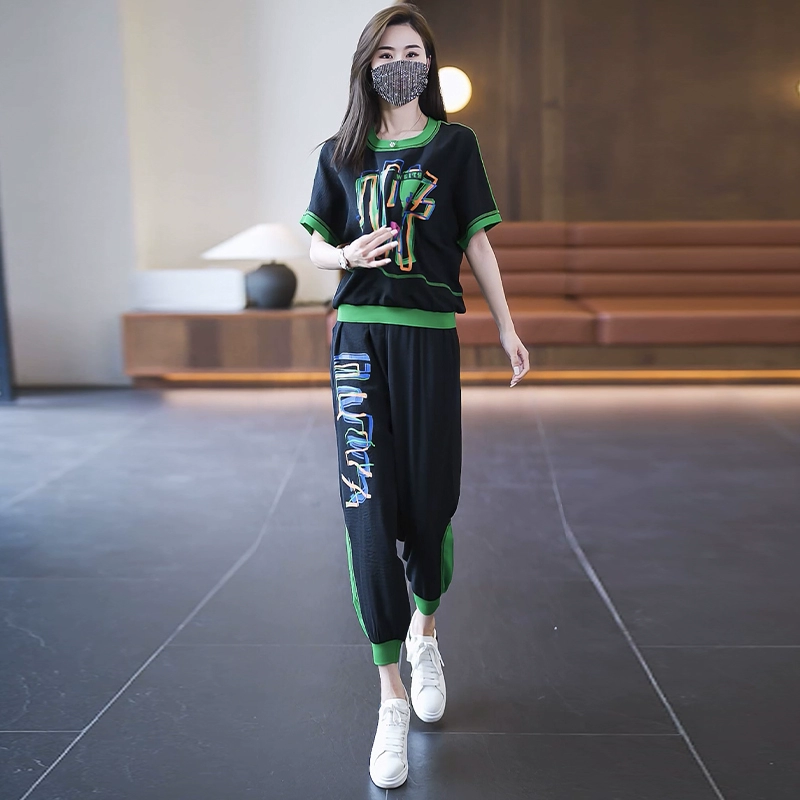 | nameOriginal | Fat girl age-reducing short-sleeved nine-point pants casual sports suit |