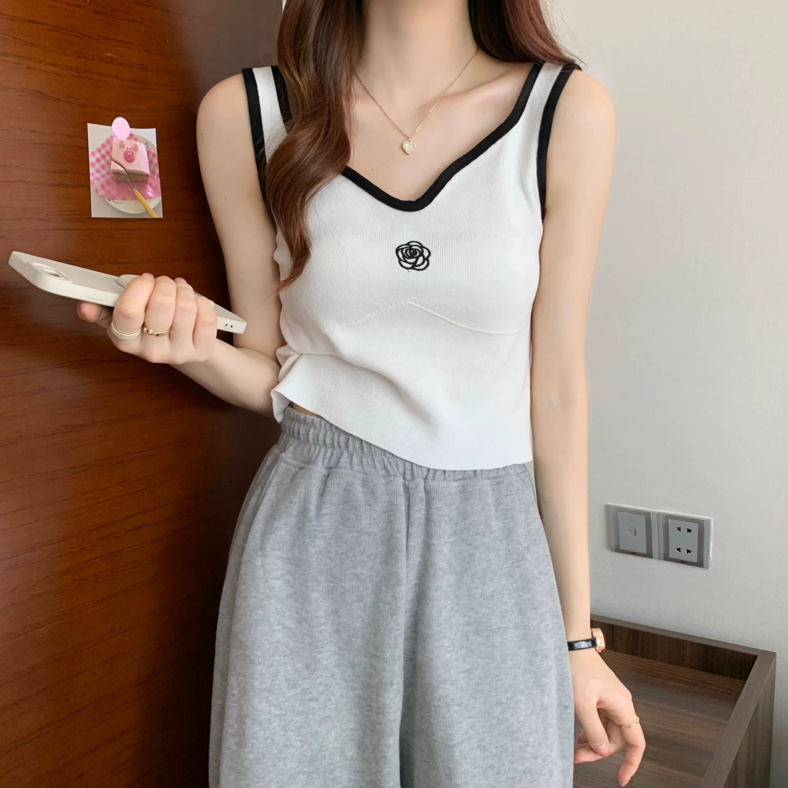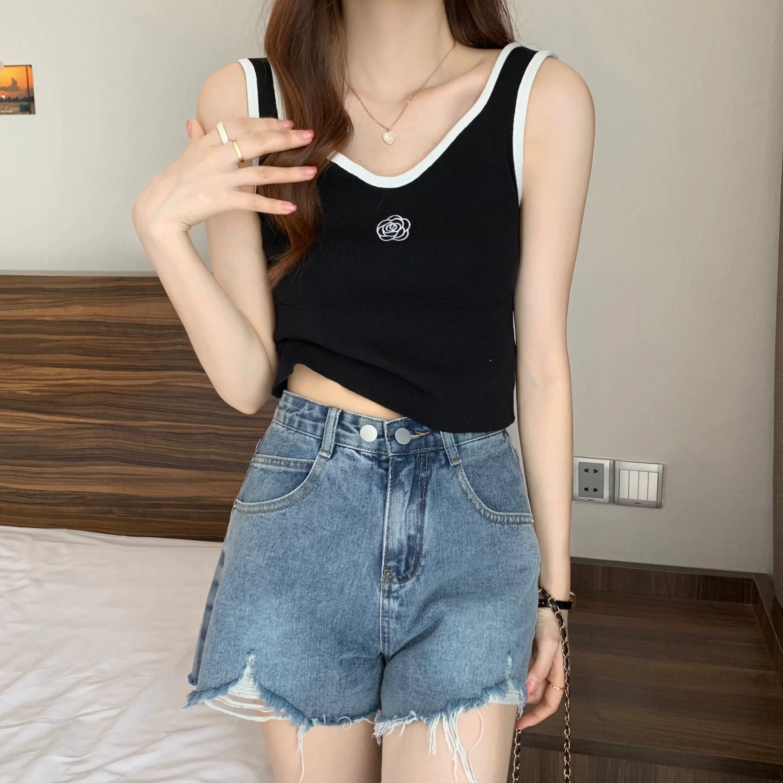 | nameOriginal | Fat girl large size embroidered small fragrant camellia knitted camisole summer outer wear slim short sleeveless top |